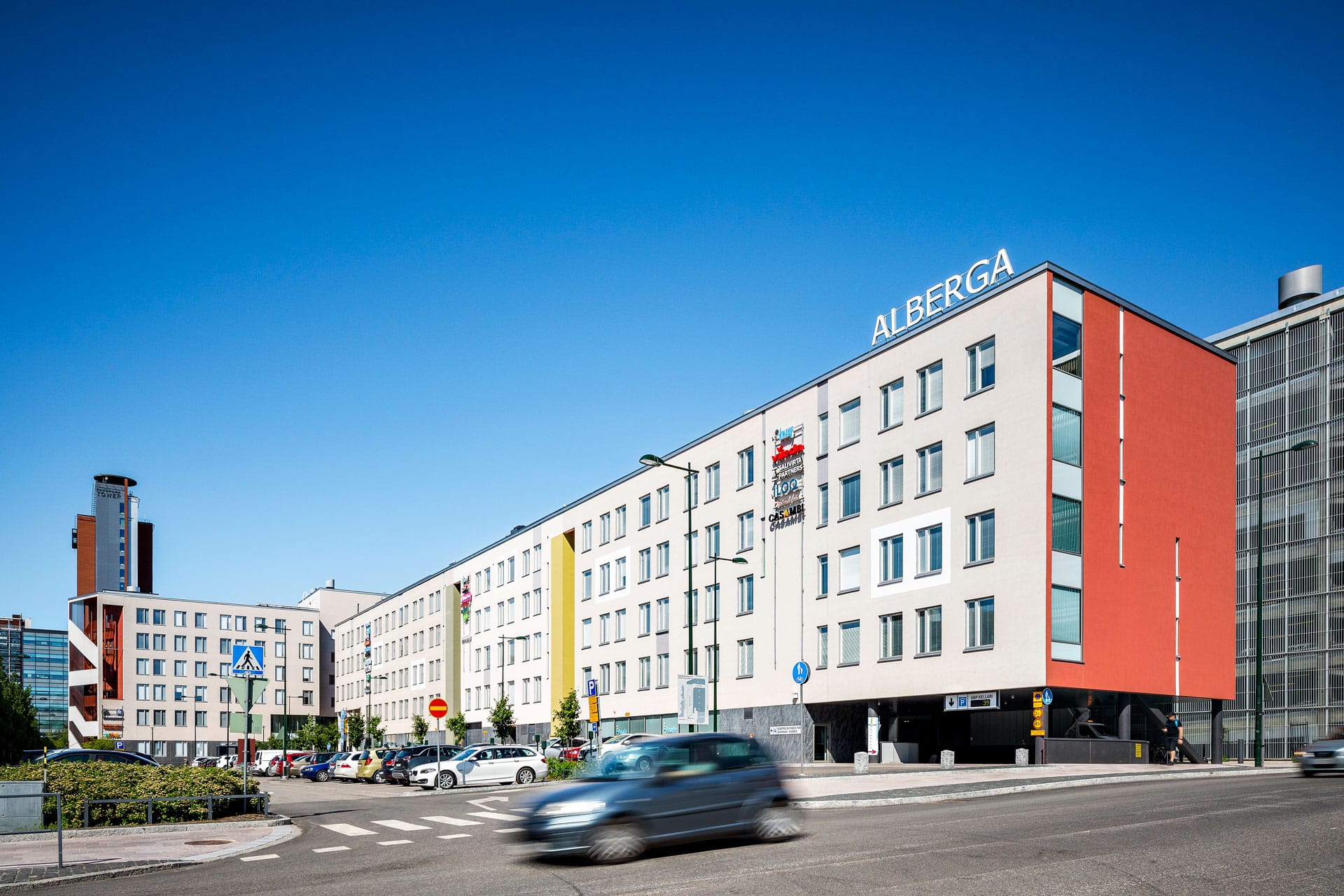 Kehä I lipuu vierestä ja Turunväyläkin vain puolen kilometrin päässä. Albergan parkkihallissa sekä viereisessä pysäköintitalossa on yhteensä 740 autopaikkaa. Vieraspaikkoja löytyy runsaasti talon edustalta.